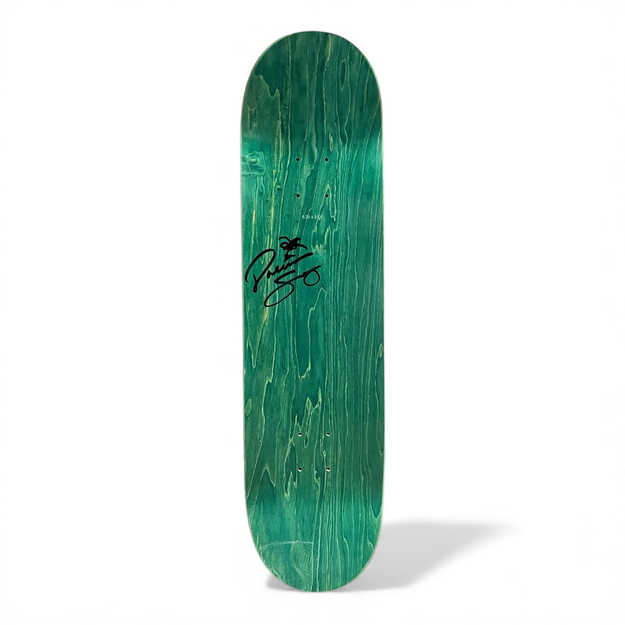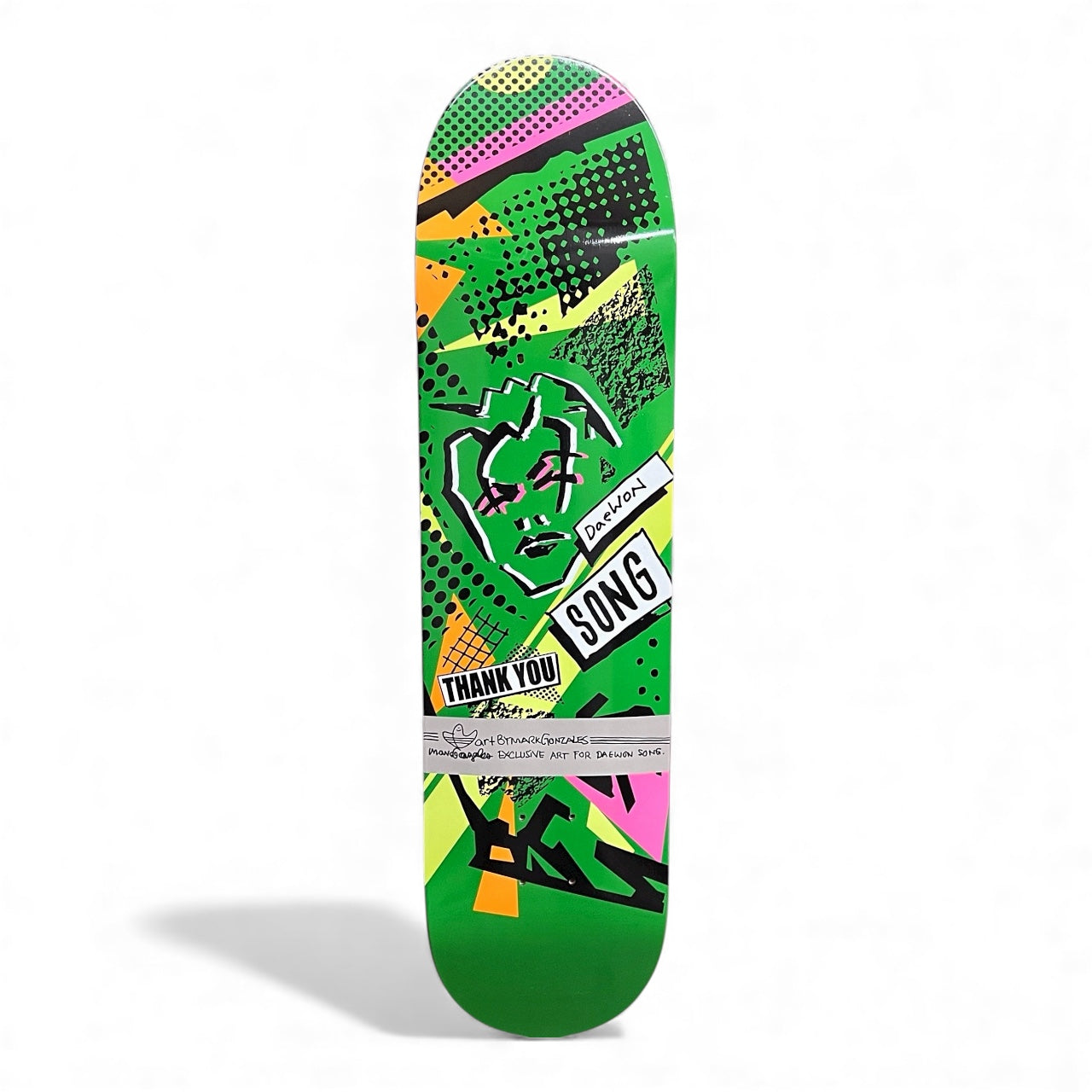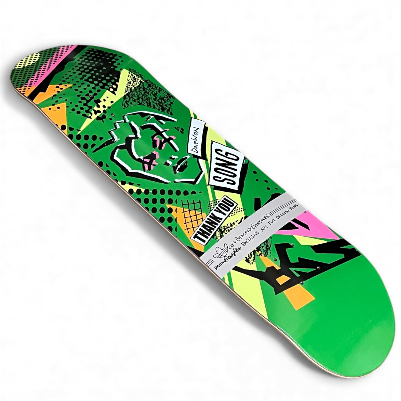 #6 Misprint from the collection – The first seven decks in the Dae-Won Hundred collection drew inspiration from the original Gonz color palette of the ’80s. #6 was intended for a green woodgrain, but ended up as a full green flood print by mistake. A rare misprint that still looks incredible!